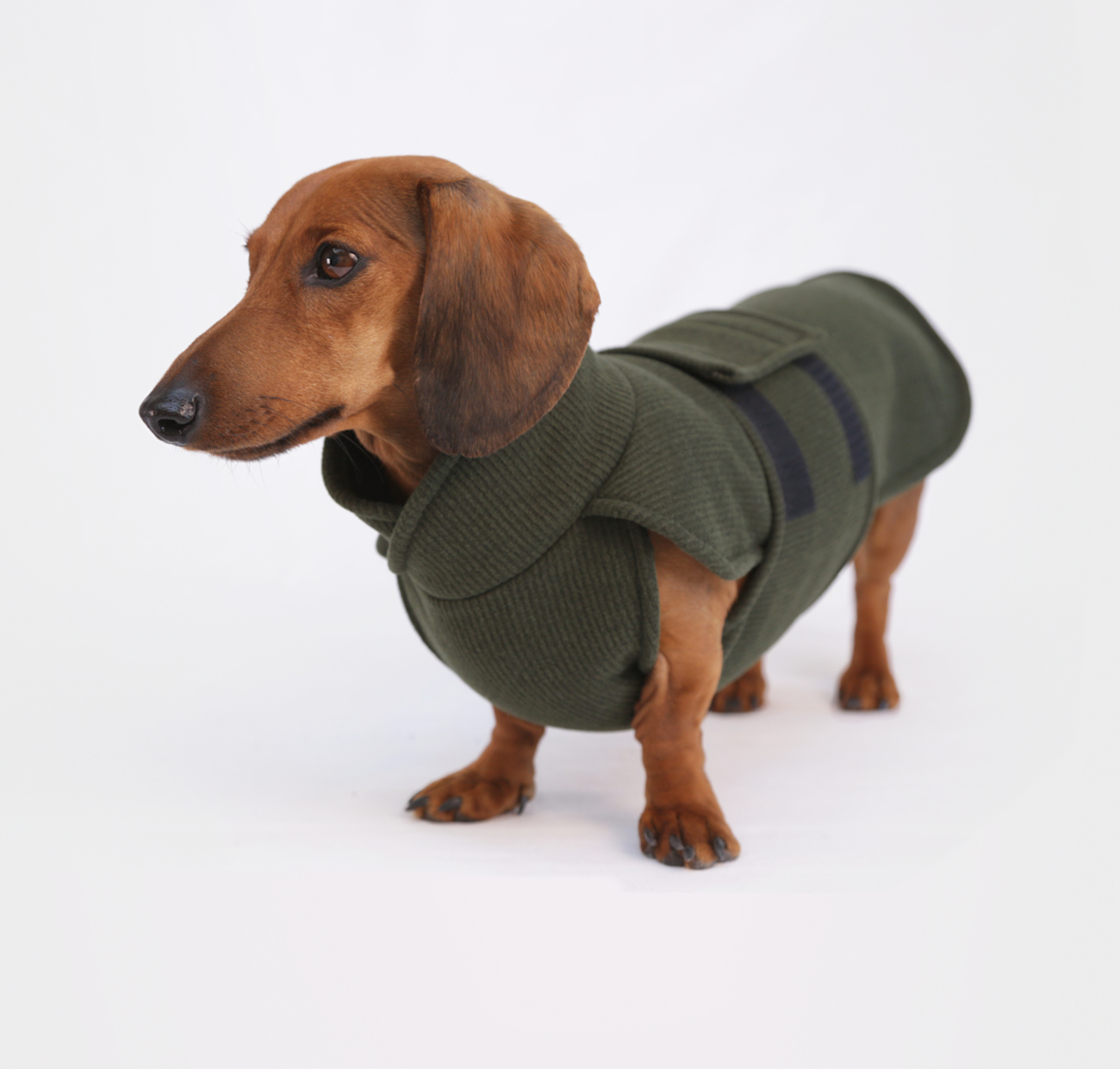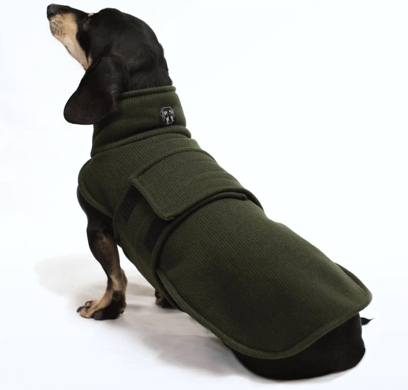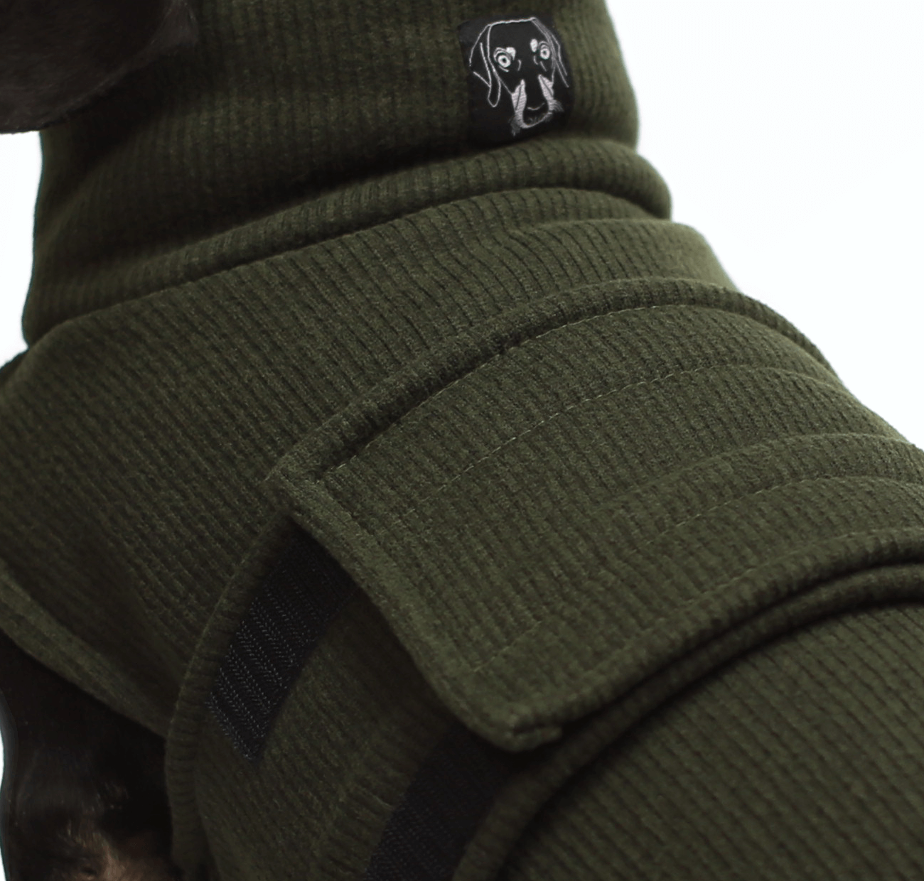 A refined fleece wrap in green, designed like a sweater with a ribbed knit face and soft sherpa on the inside. Wind-resistant and warm, it’s finished with an adjustable velcro closure for a secure fit and a tailored crossover collar that blends modern lines with timeless comfort. Wear it solo or layer it under a coat for added coziness on cold-weather walks.